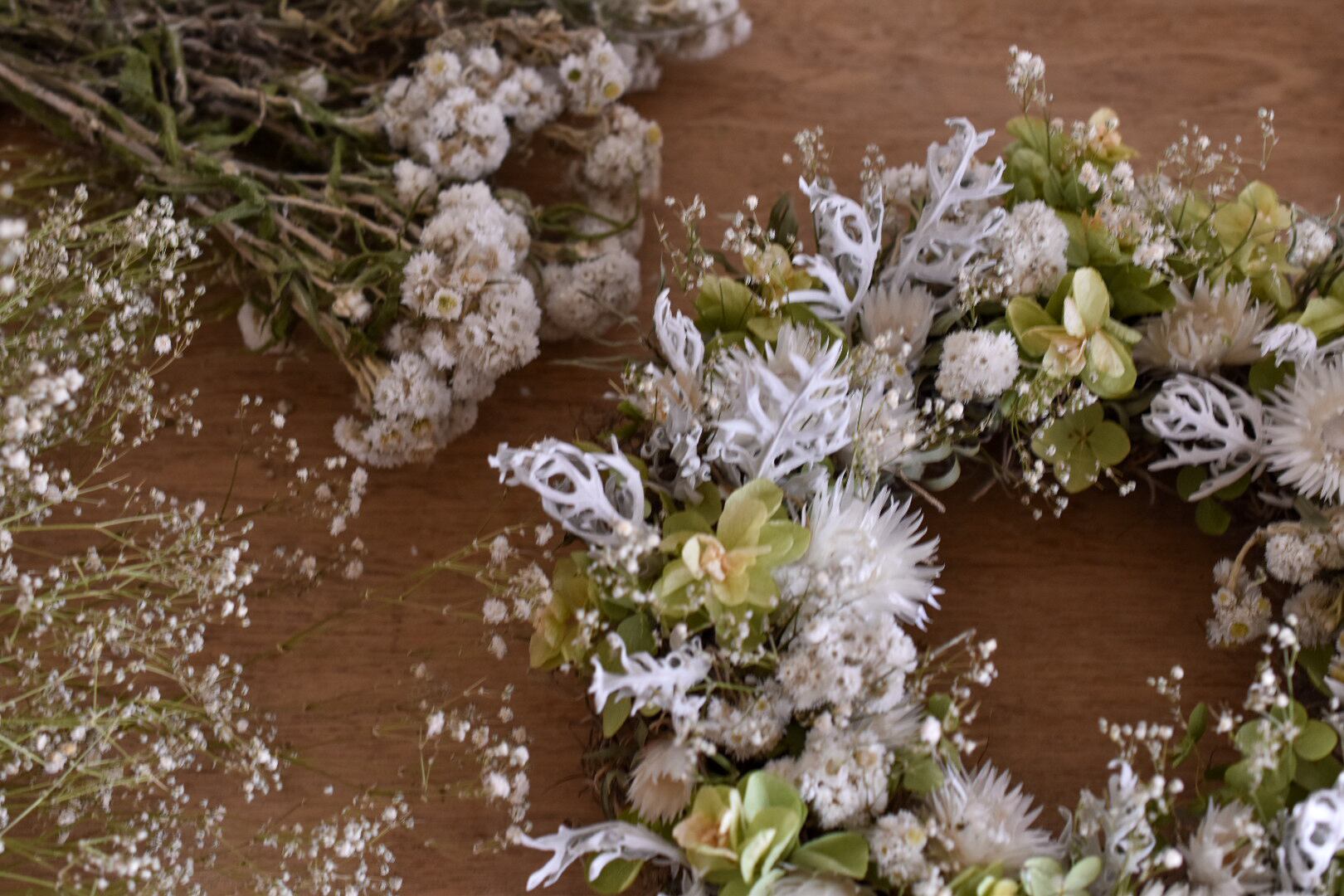 可憐でシンプルに輝く白色のお花たちを集めた花飾りです。