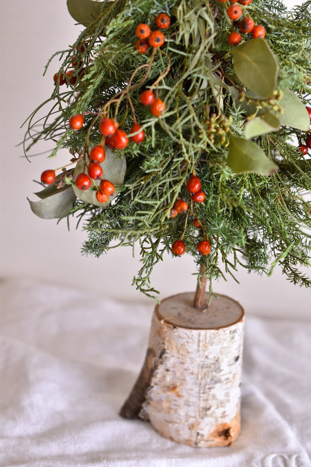ヒバや実たちが、楽しく揺れているような、ほっこり可愛いツリーです。