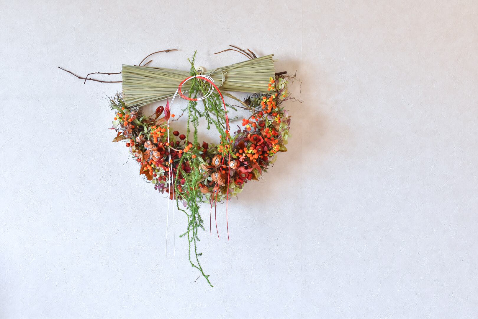 華やかなナチュラルドライフラワーを新年のお飾りに仕立てました。