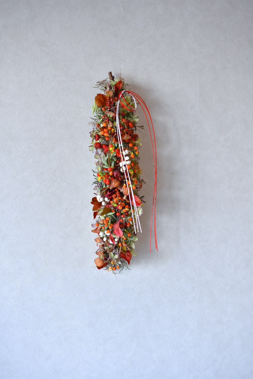 縦長でモダンな花飾りです。お部屋に飾るとぱっと明るく彩りを添えていただけます。